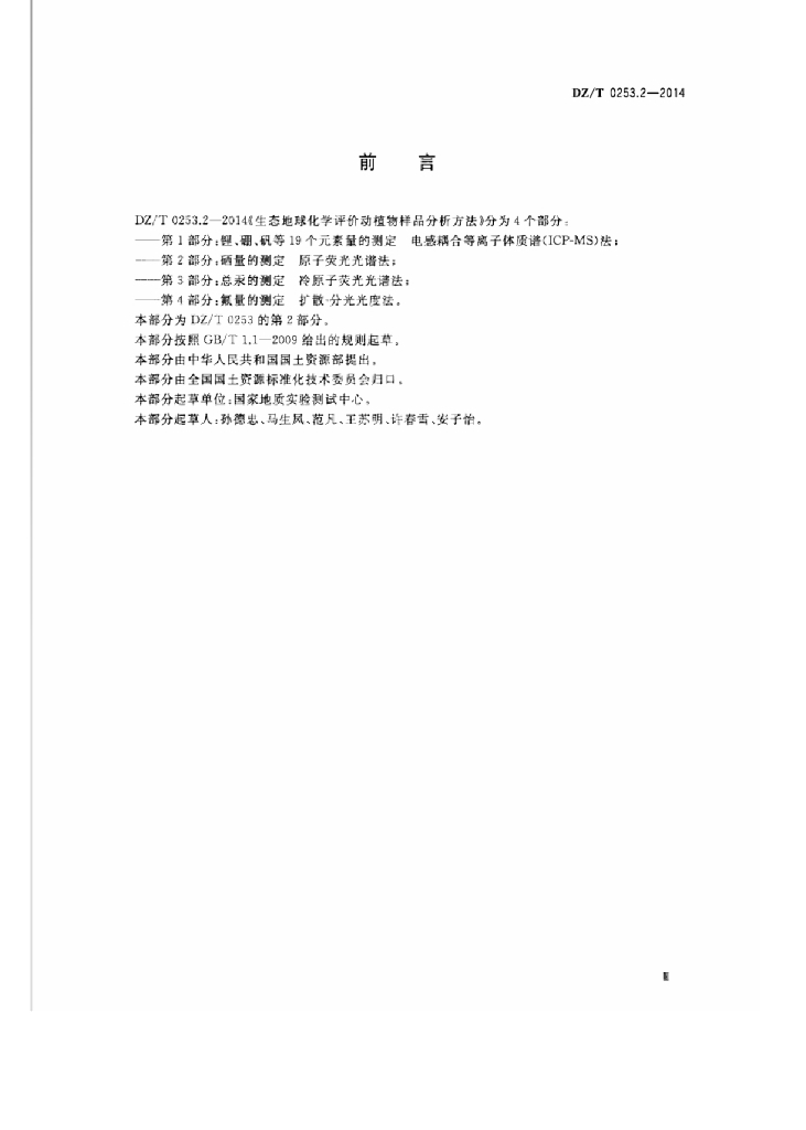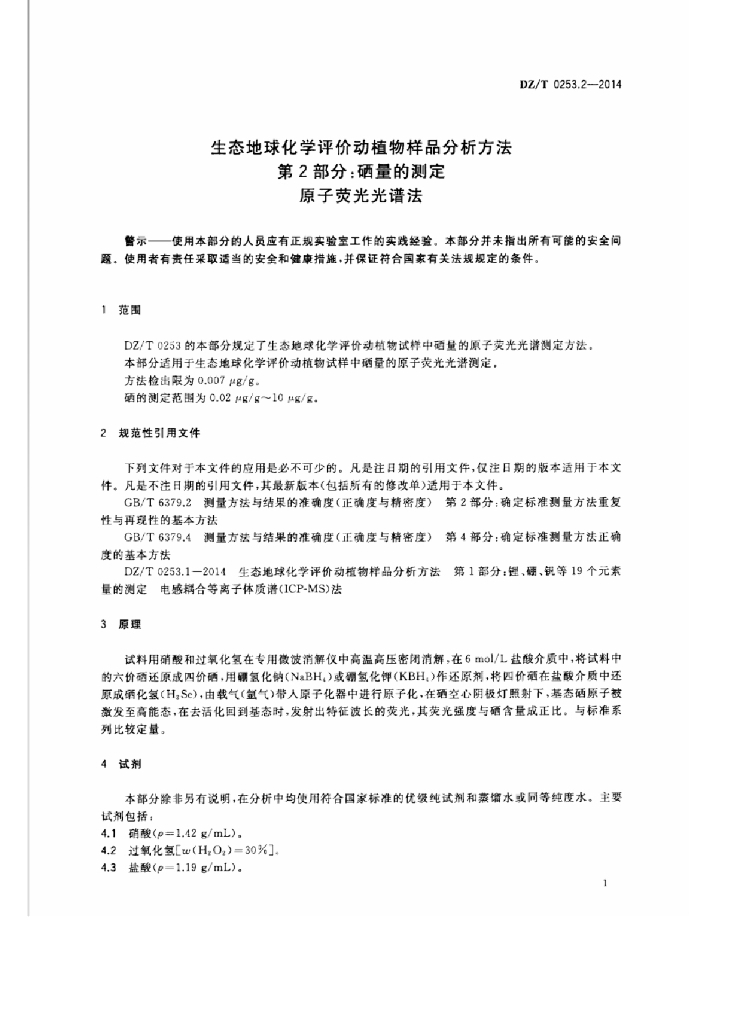 DZ/T 0253.2-2014 生态地球化学评价动植物样品分析方法 第2部分:硒量的测定原子荧光光谱法