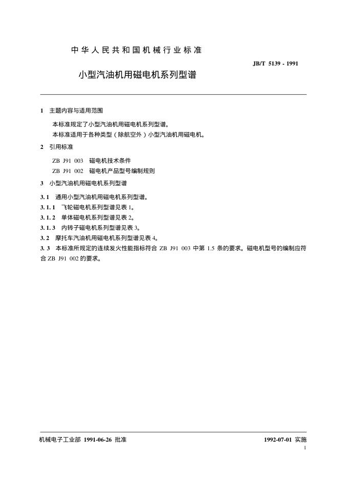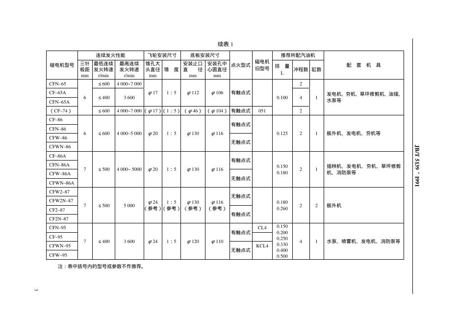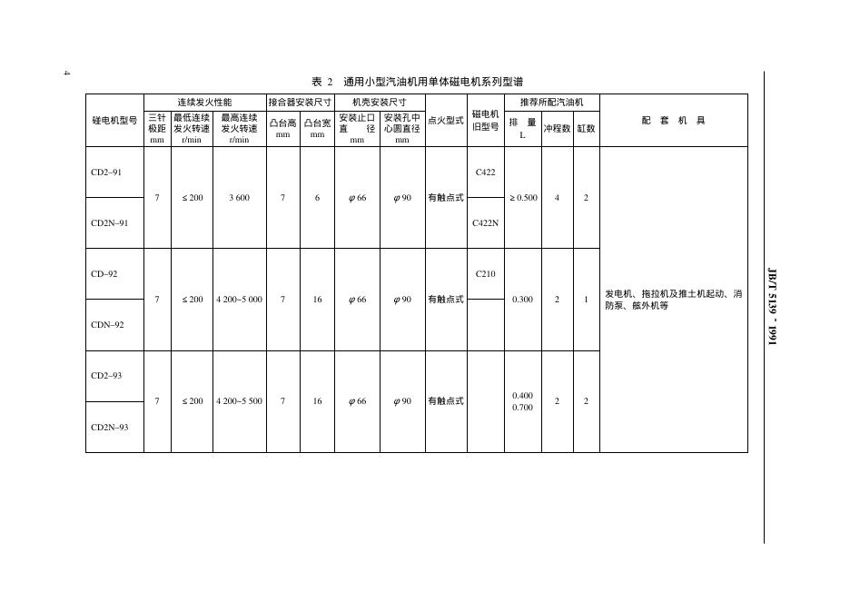 JB/T 5139-1991 小型汽油机用磁电机 系列型谱