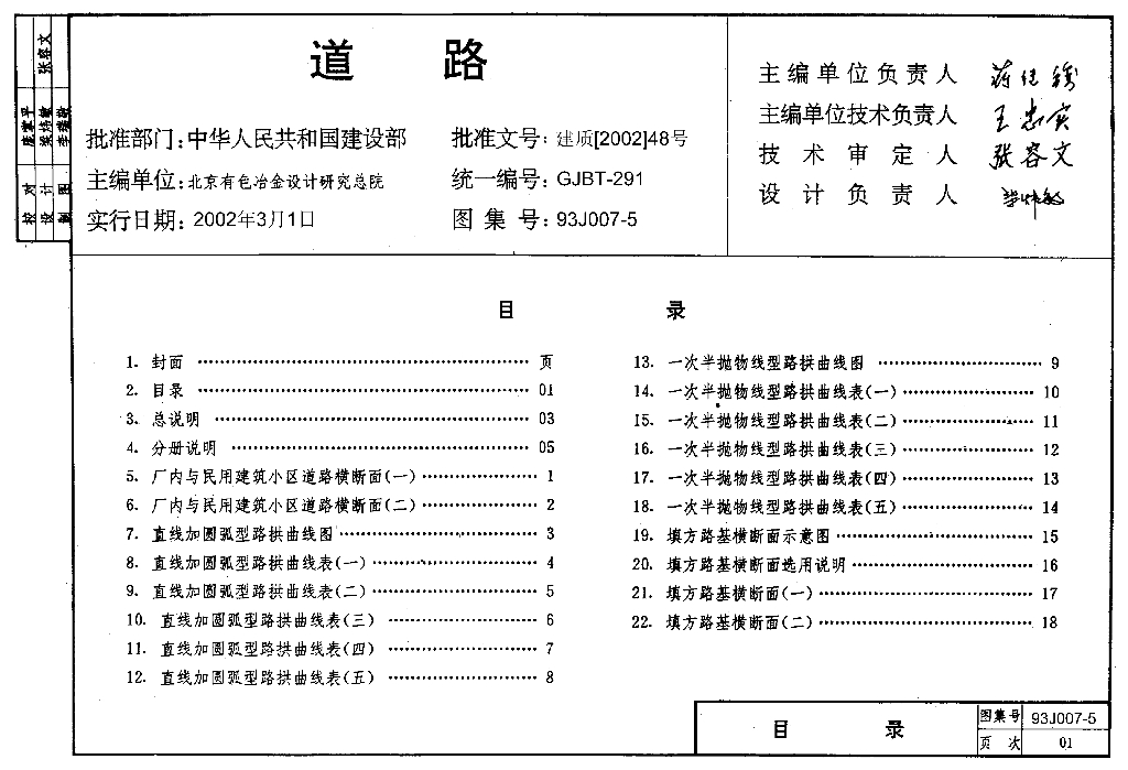 93J007-5 道路图集-路拱曲线与路基横断面