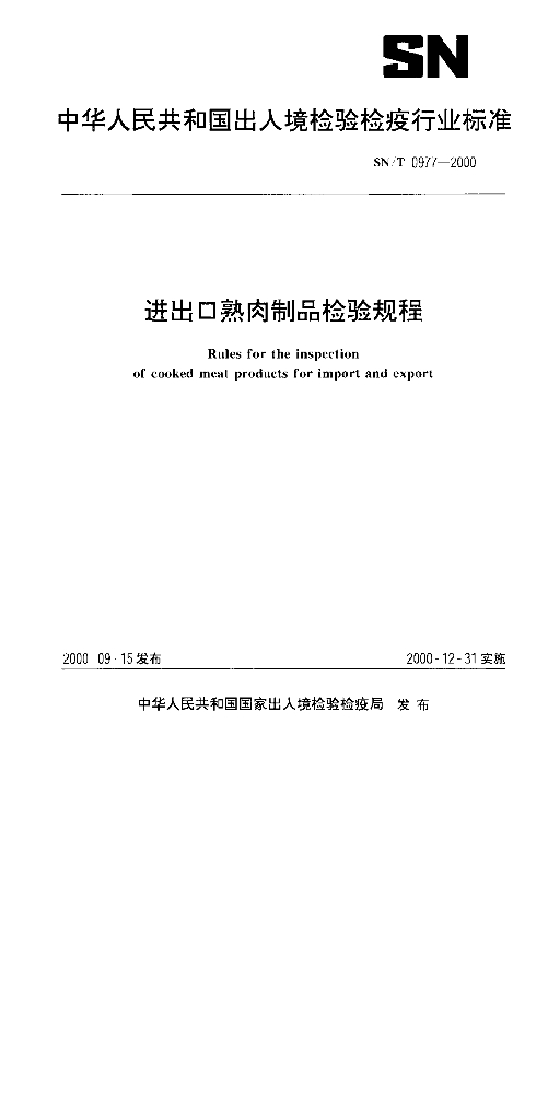 SN/T 0977-2000 进出口熟肉制品检验规程