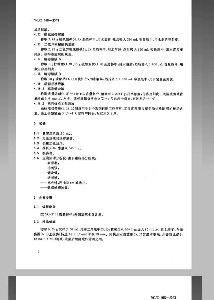 YC/T 468-2013 烟草及烟草制品 总植物碱的测定 连续流动