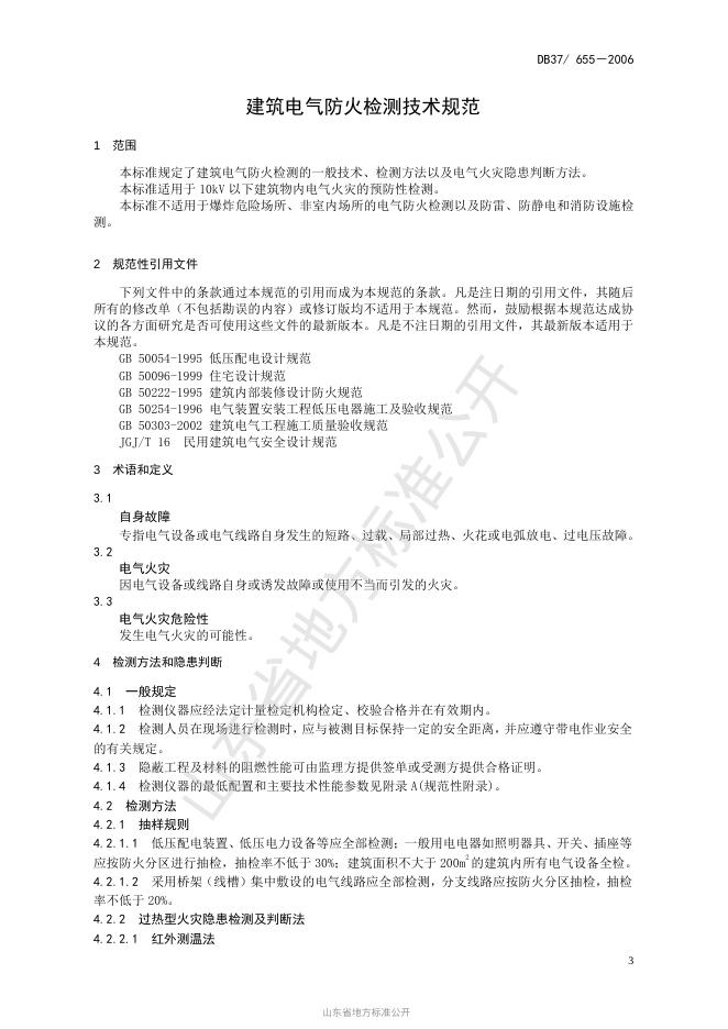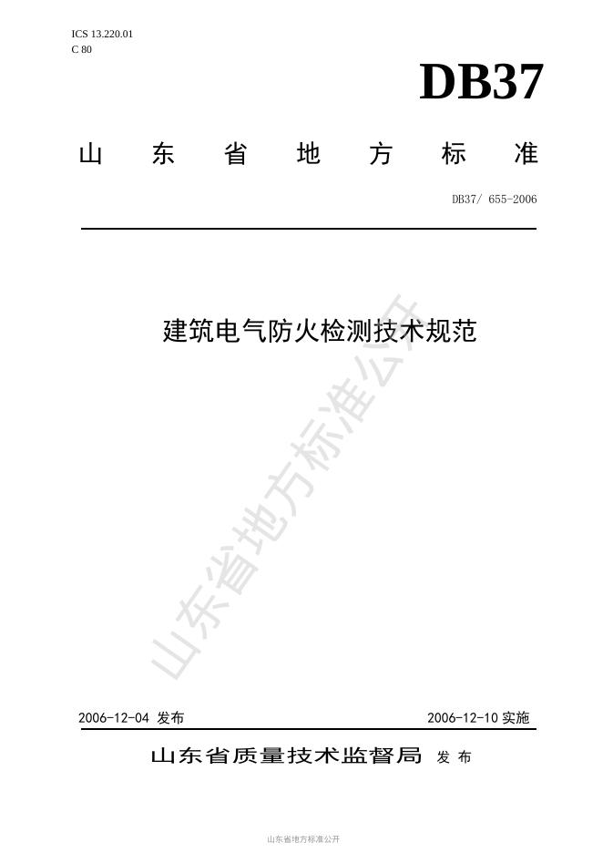 DB37/ 655-2006 建筑电气防火检测技术规范