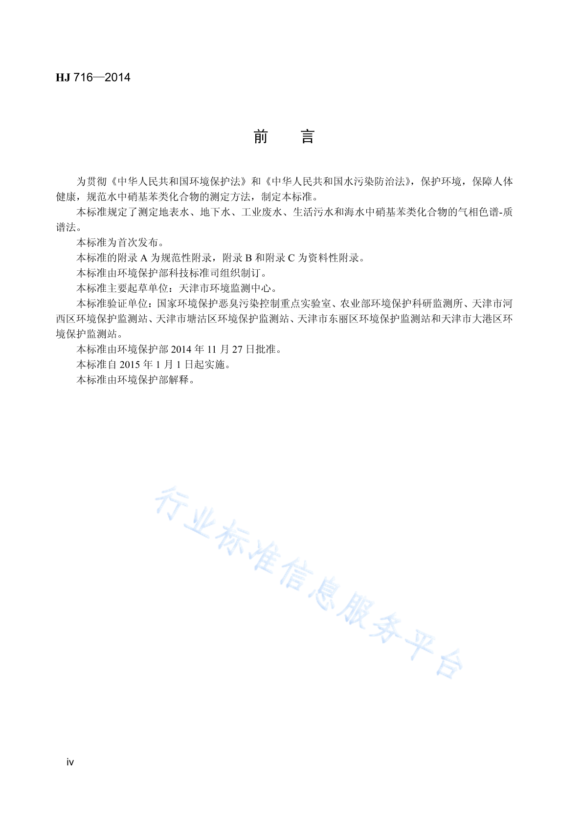 HJ 716-2014 水质 硝基苯类化合物的测定 气相色谱-质谱法