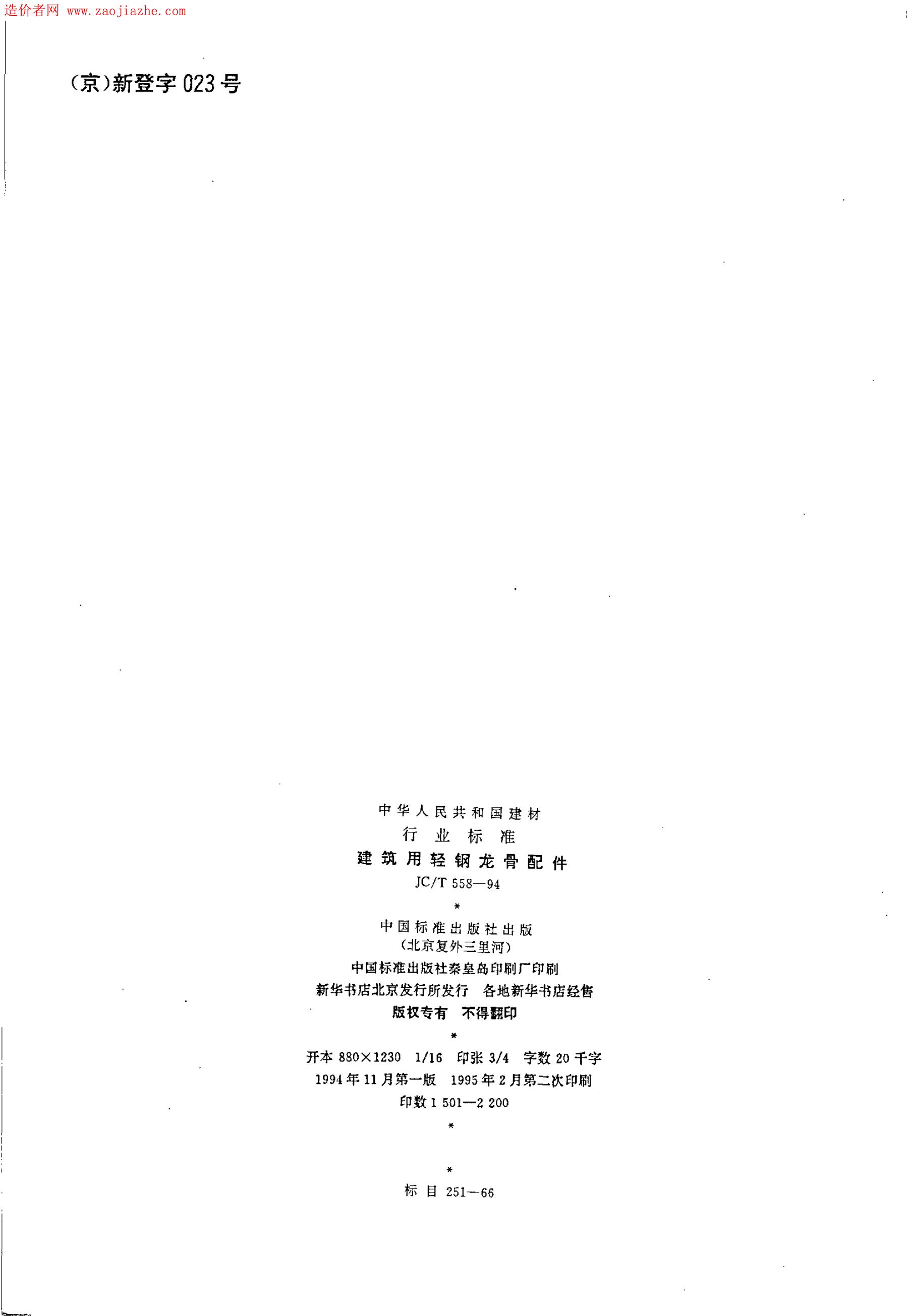 JC/T 558-1994 建筑用轻钢龙骨配件