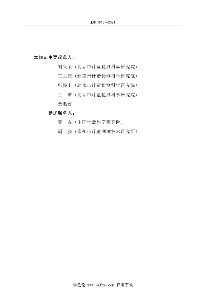 刘兴荣(北京市计量检测科学研究院)、王志超(北京市计量检测科学研究院)、张漫山(北京市计量检测科学研究院)、王雪(北京市计量检测科学研究院)、全贻智、黄垚(中国计量科学研究院)、周骏(常州市计量测试技术研究所)