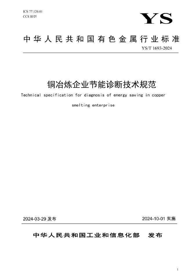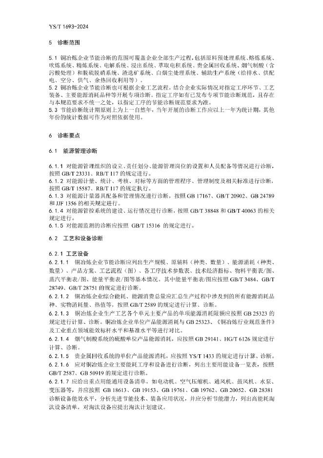 YS/T 1693-2024 铜冶炼企业节能诊断技术规范