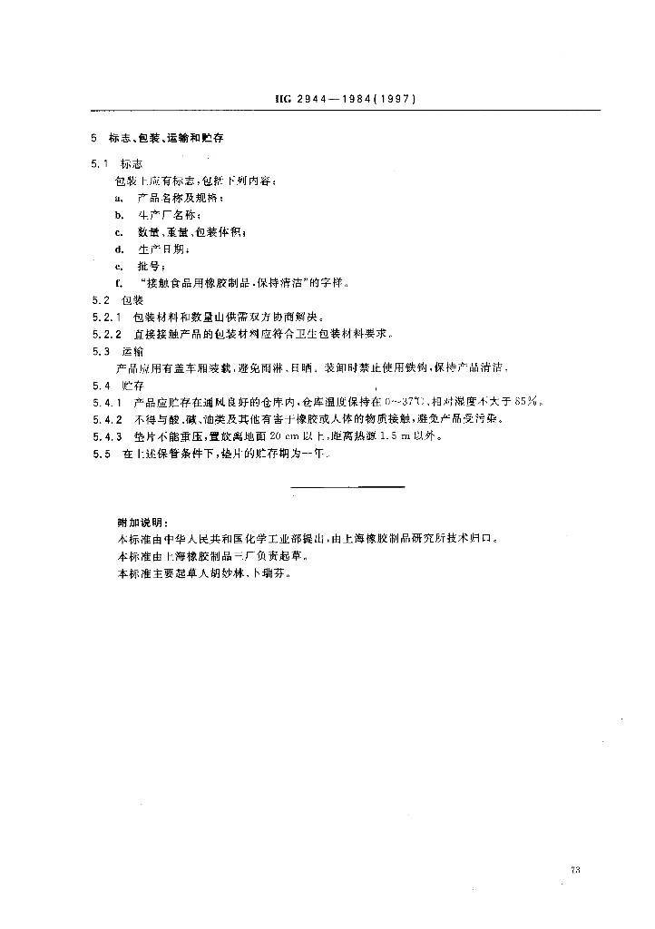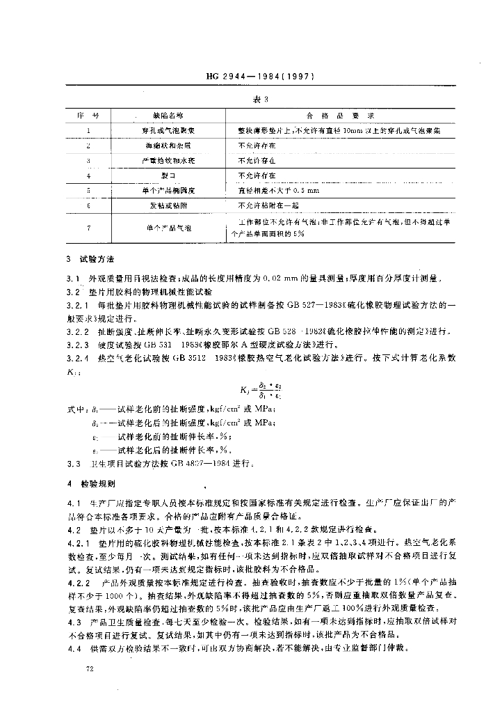 HG 2944-1984(1997) 食品容器橡胶垫片