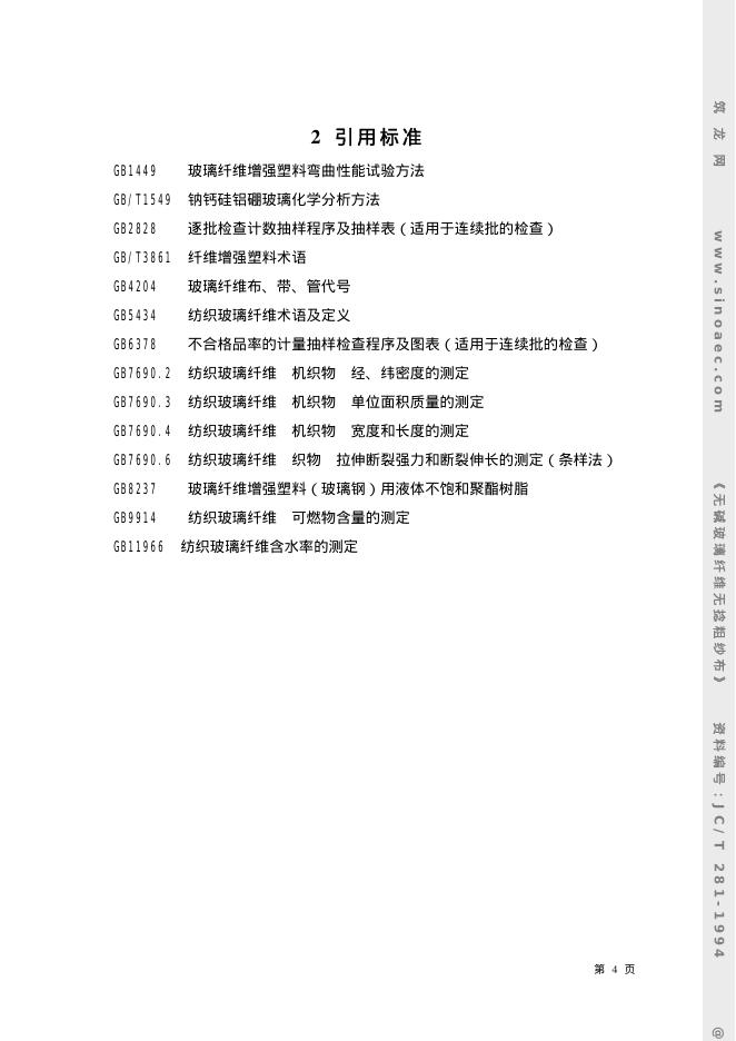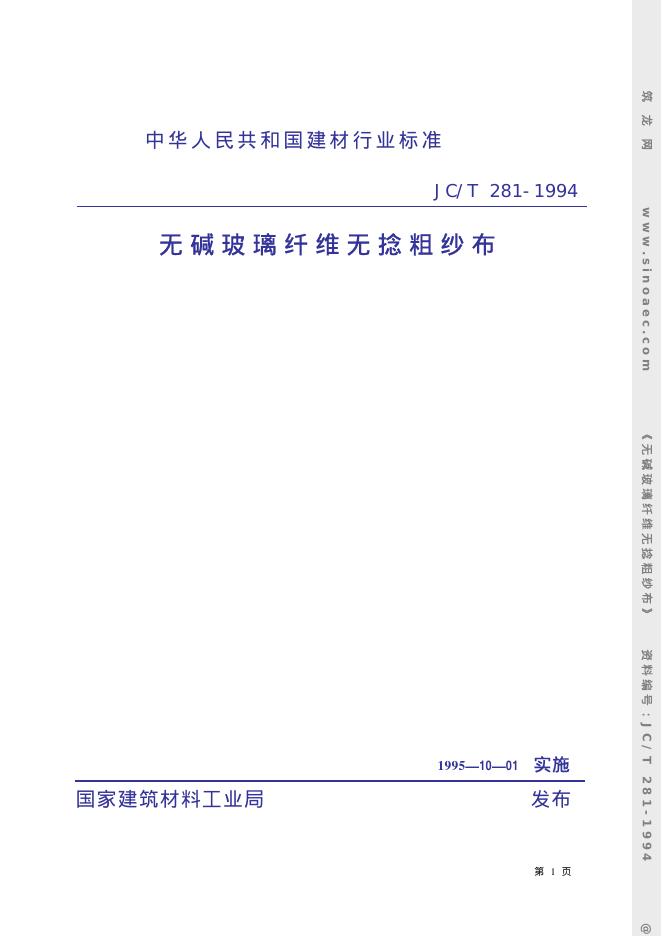 JC/T 281-1994 无碱玻璃纤维无捻粗纱布