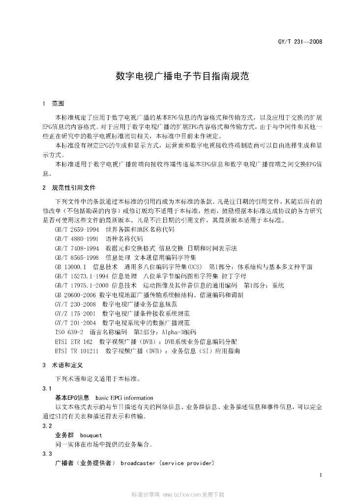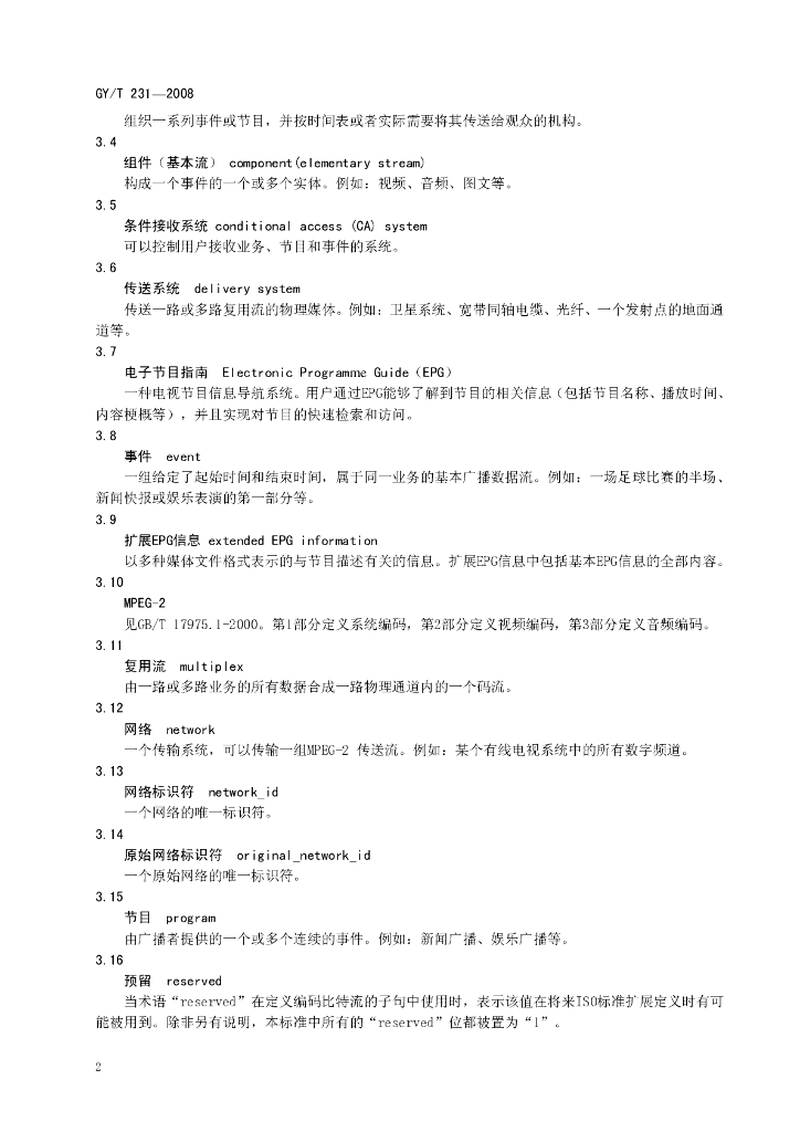 GY/T 231-2008 数字电视广播电子节目指南规范
