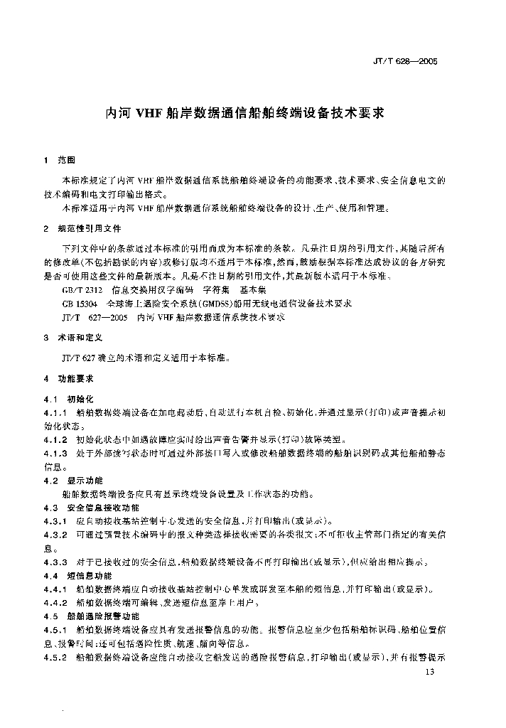 JT/T 628-2005 内河VHF船岸数据通信船舶终端设备技术要求