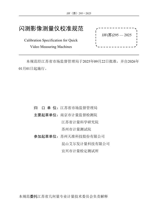 JJF(苏)295-2025 闪测影像测量仪校准规范