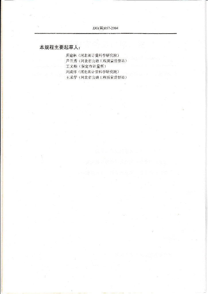周建林(河北省计量科学研究院)、芦兰秀(河北省公路工程质量监督站)、王义柏(保定市计量所)、刘成祥(河北省计量科学研究院)、王录学(河北省公路工程质量监督站)