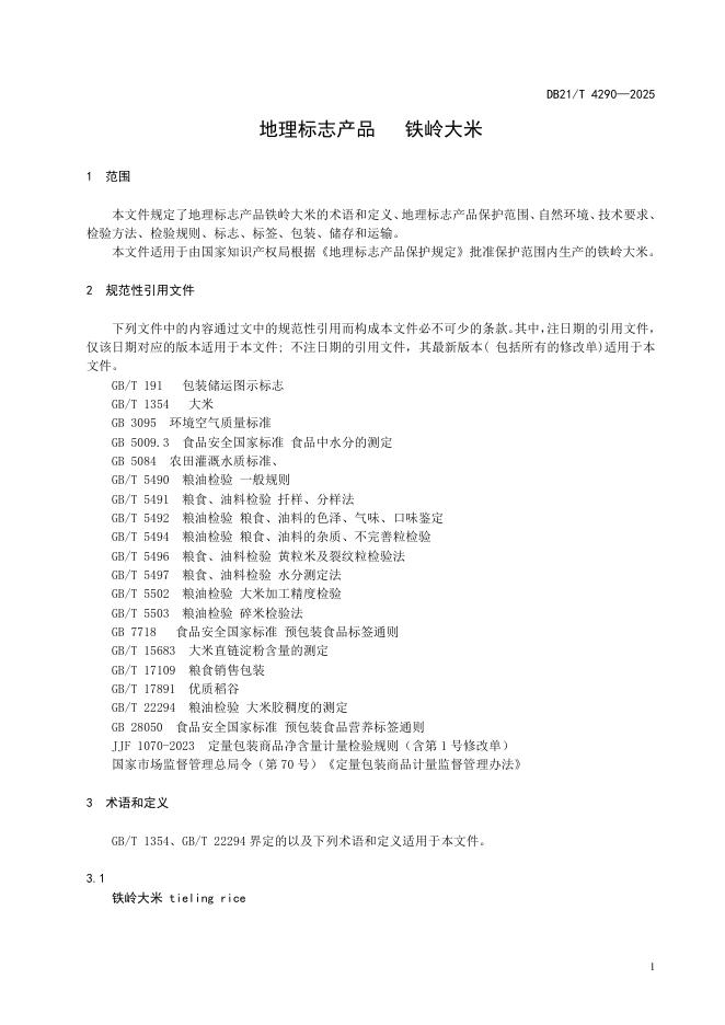 DB21/T 4290-2025 地理标志产品 铁岭大米
