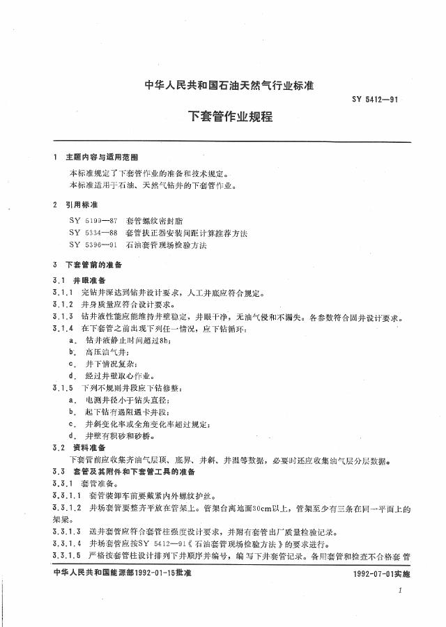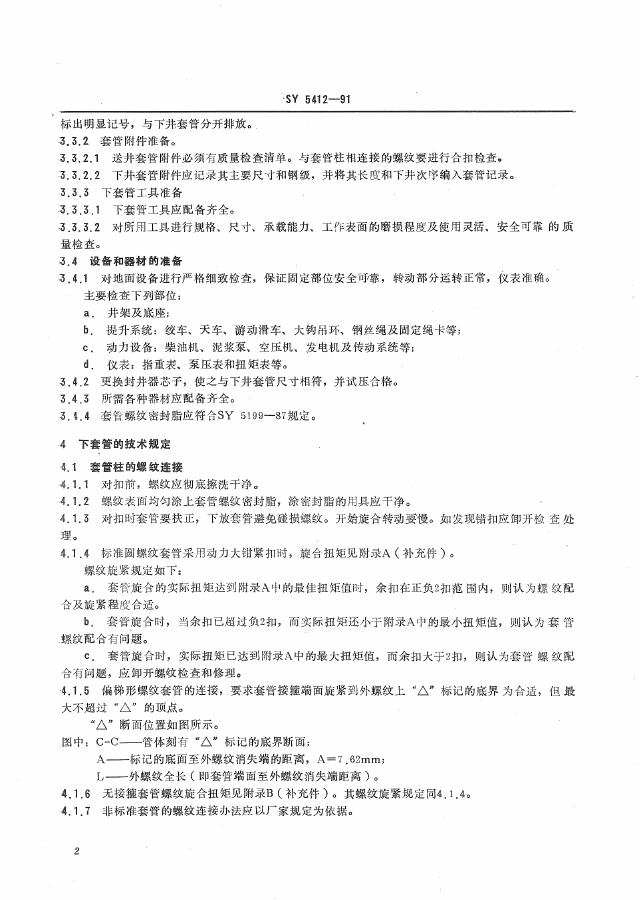 SY 5412-1991 下套管作业规程
