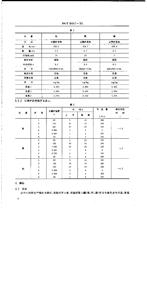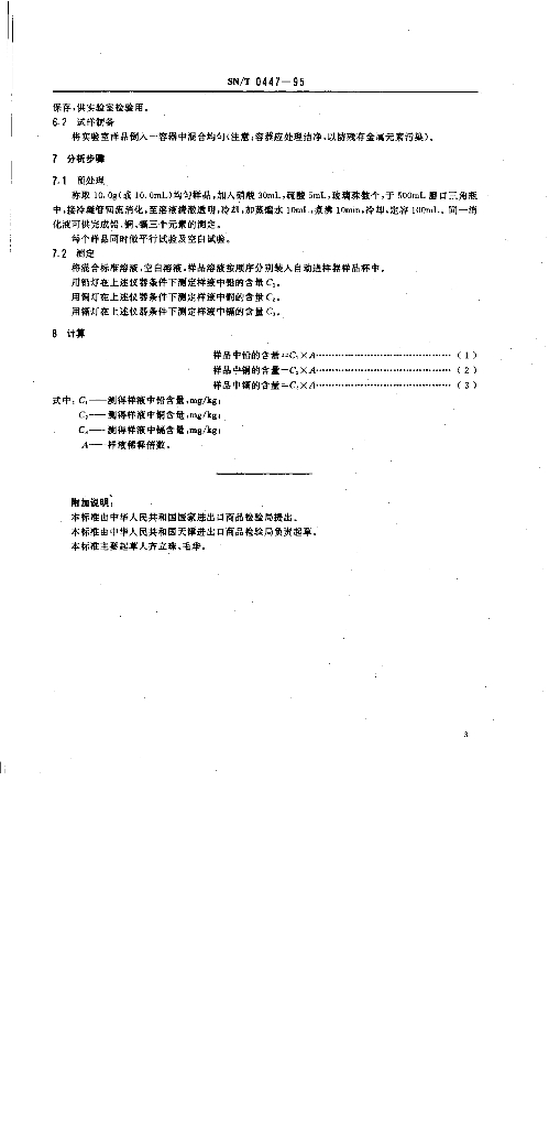 SN/T 0447-1995 出口饮料中铅、铜、镉的测定