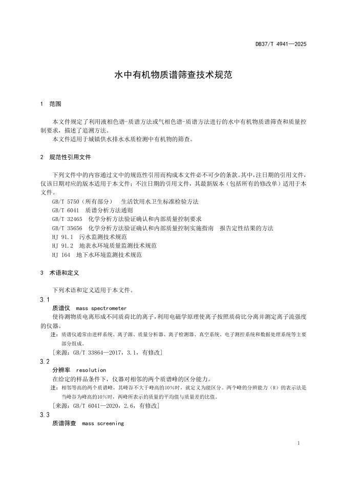 DB37/T 4941-2025 水中有机物质谱筛查技术规范