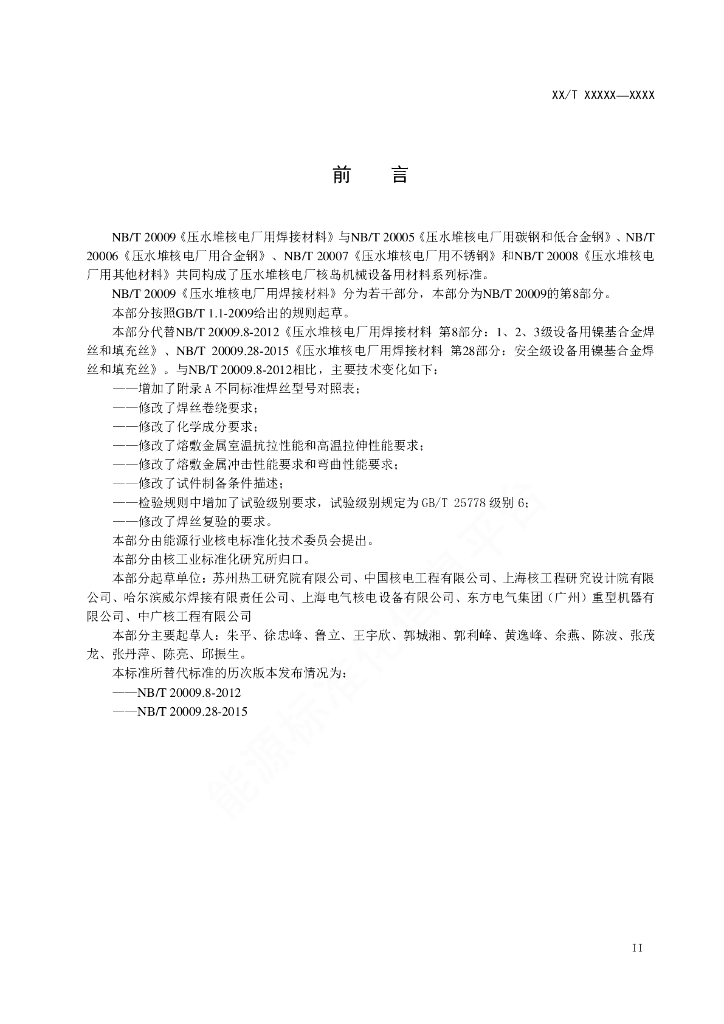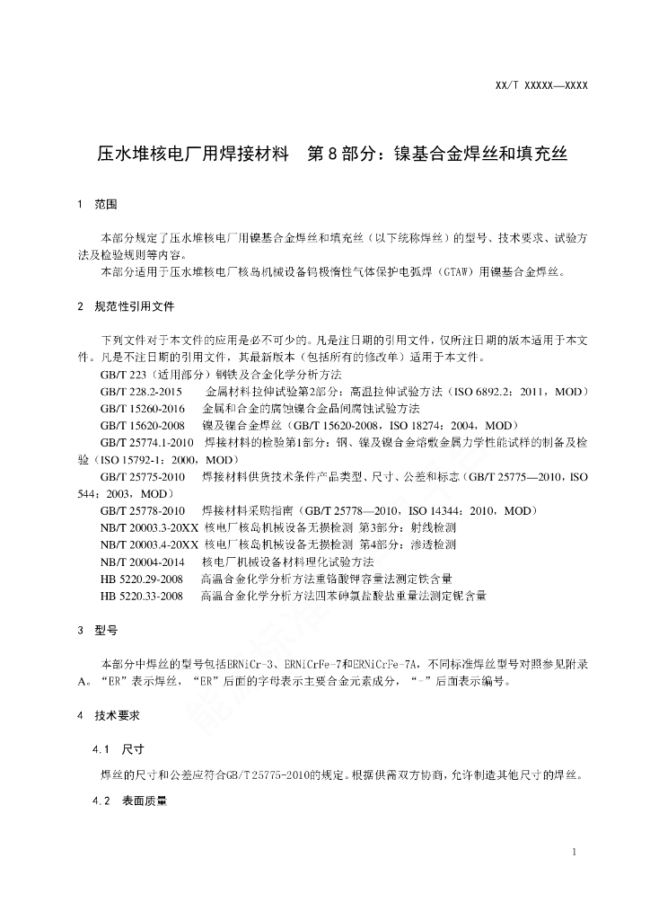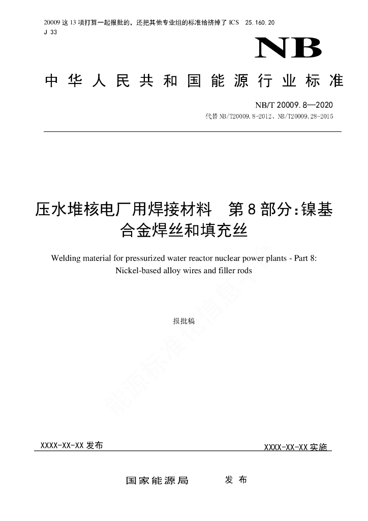 NB/T 20009.8-2021 压水堆核电厂用焊接材料 第8部分:镍基合金焊丝和填充丝