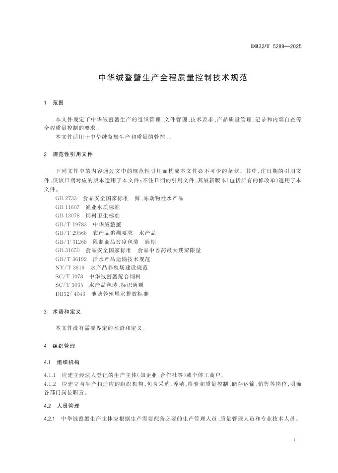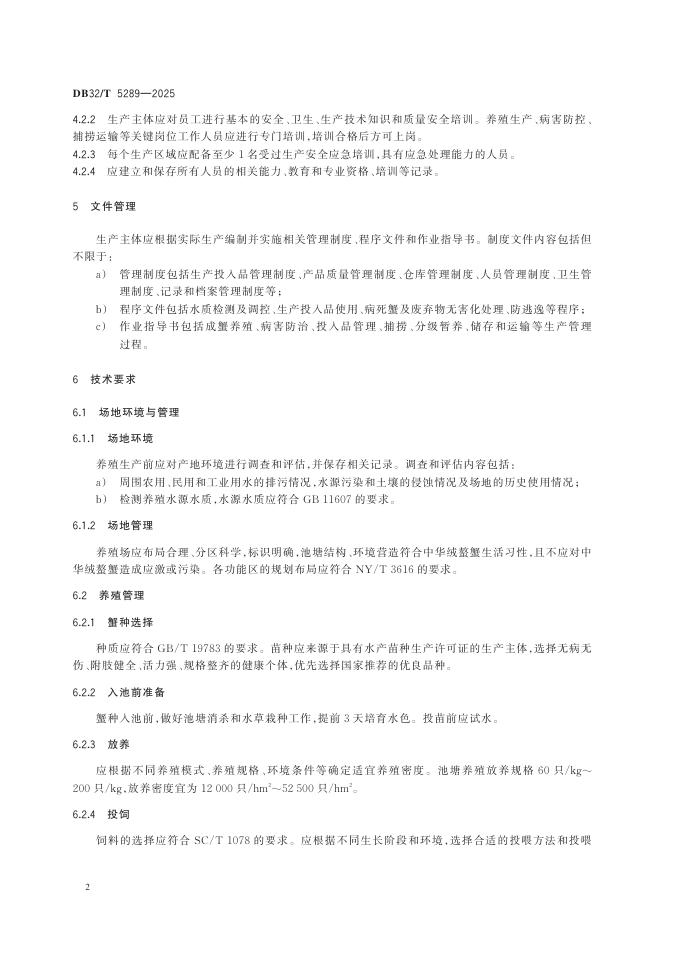 DB32/T 5289-2025 中华绒螯蟹生产全程质量控制技术规范