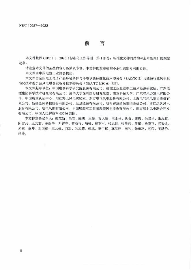 中国电器科学研究院股份有限公司、机械工业北京电工技术经济研究所、广东能源集团科学技术研究院有限公司、清华大学深圳国际研究生院、南方科技大学、广东省风力发电有限公司、中国质量认证中心、阳江海上风电实验室、东方电气风电股份有限公司、上海电气风电集团股份有限公司、新疆金风科技股份有限公司、远景能源有限公司、明阳智慧能源集团股份公司、浙江运达风电股份有限公司、哈电风能有限公司、中国船舶重工集团海装风电股份有限公司、南方海上风电联合开发有限公司、中国人民解放军 63796部队