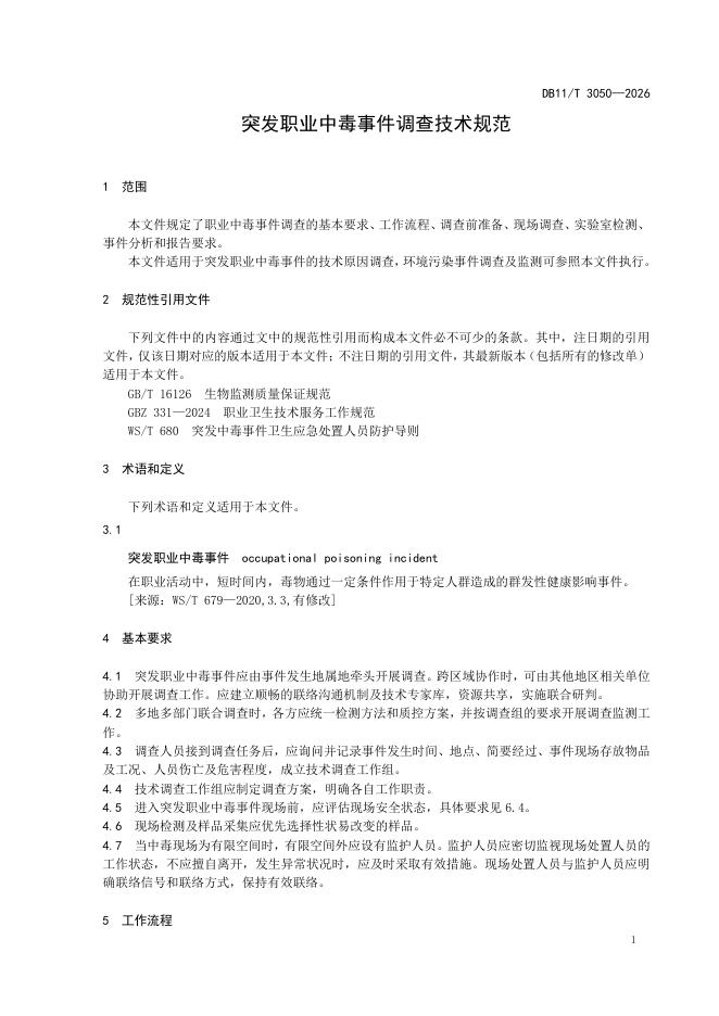 DB11/T 3050-2026 突发职业中毒事件调查技术规范