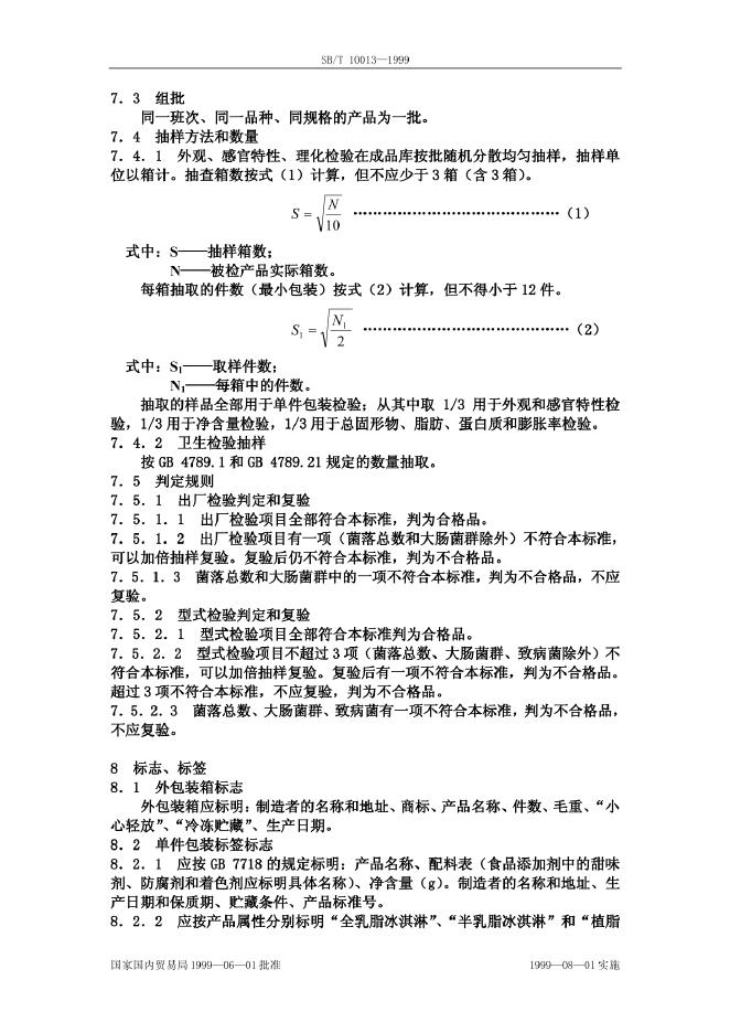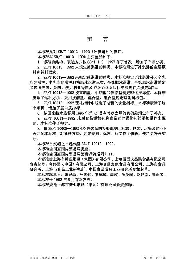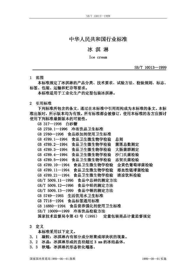 SB/T 10013-1992 冰淇淋