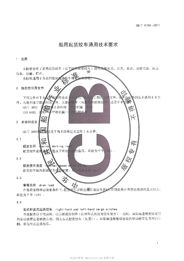 CB/T 4183-2011 船用起货绞车通用技术要求