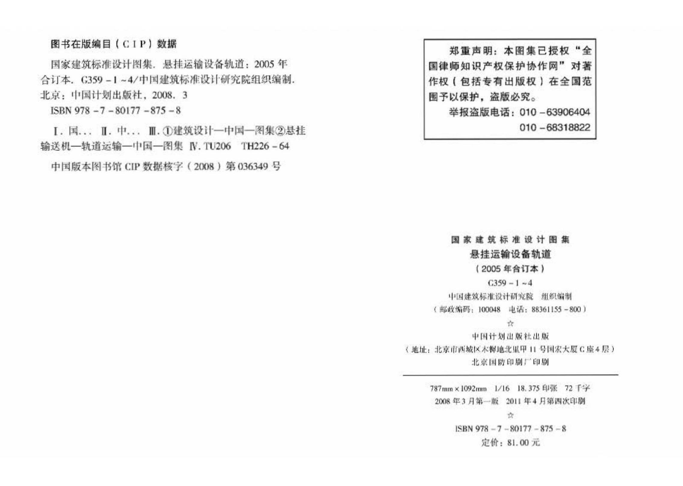 G359-1~4 悬挂运输设备轨道设计图集(2005年合订本)