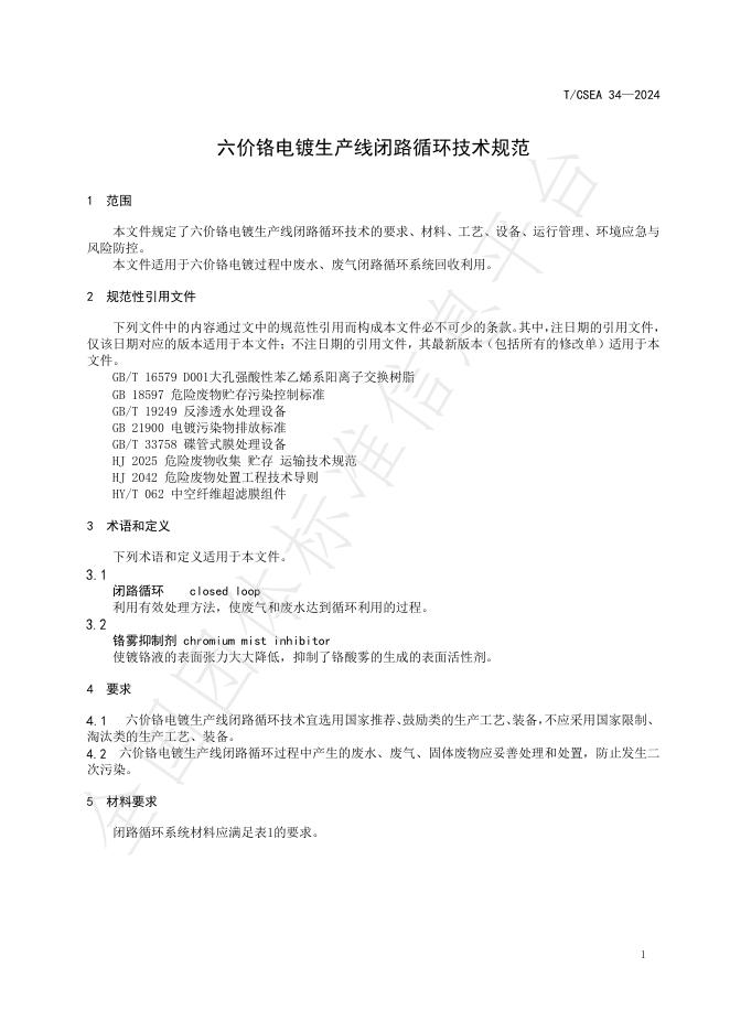 T/CSEA 34-2024 六价铬电镀生产线闭路循环技术规范