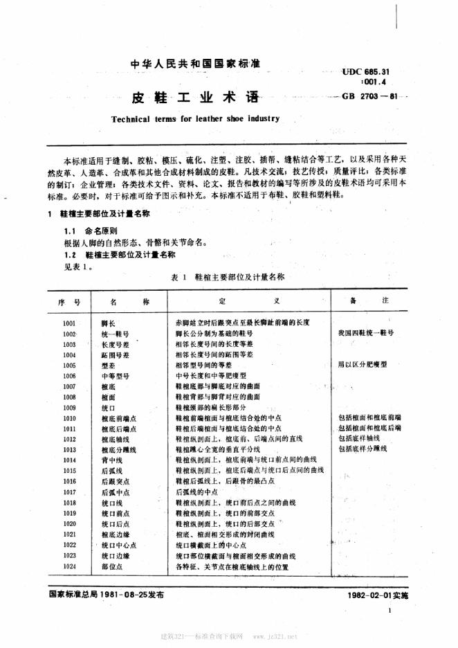 GB/T 2703-1981 皮鞋工业术语
