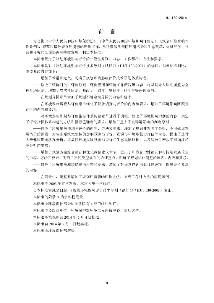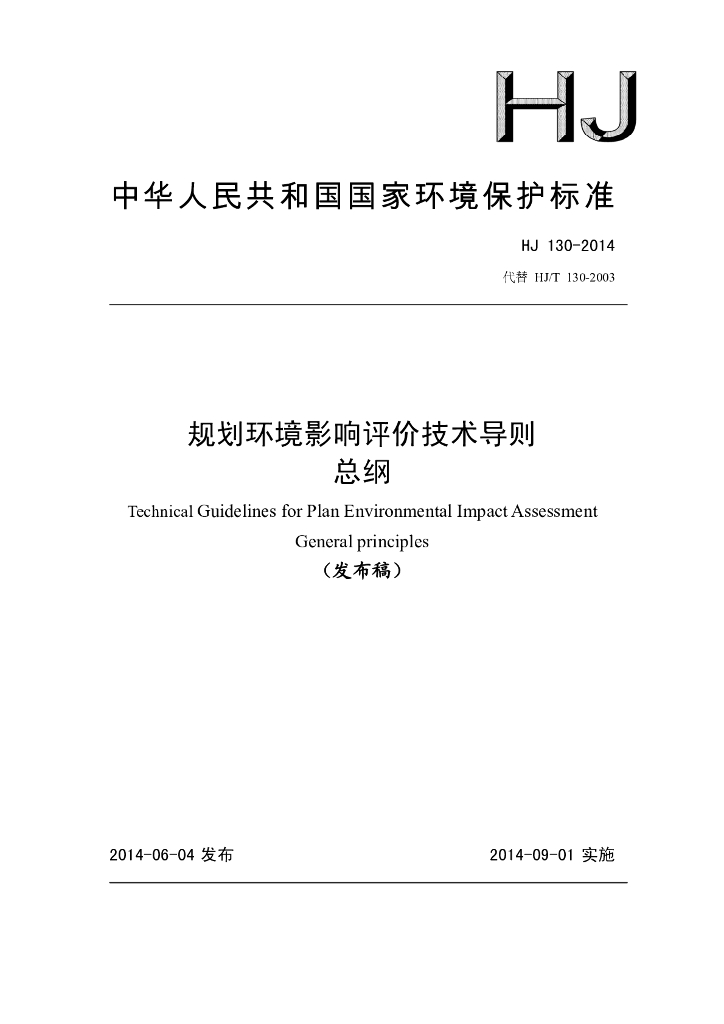 HJ 130-2014 规划环境影响评价技术导则 总纲