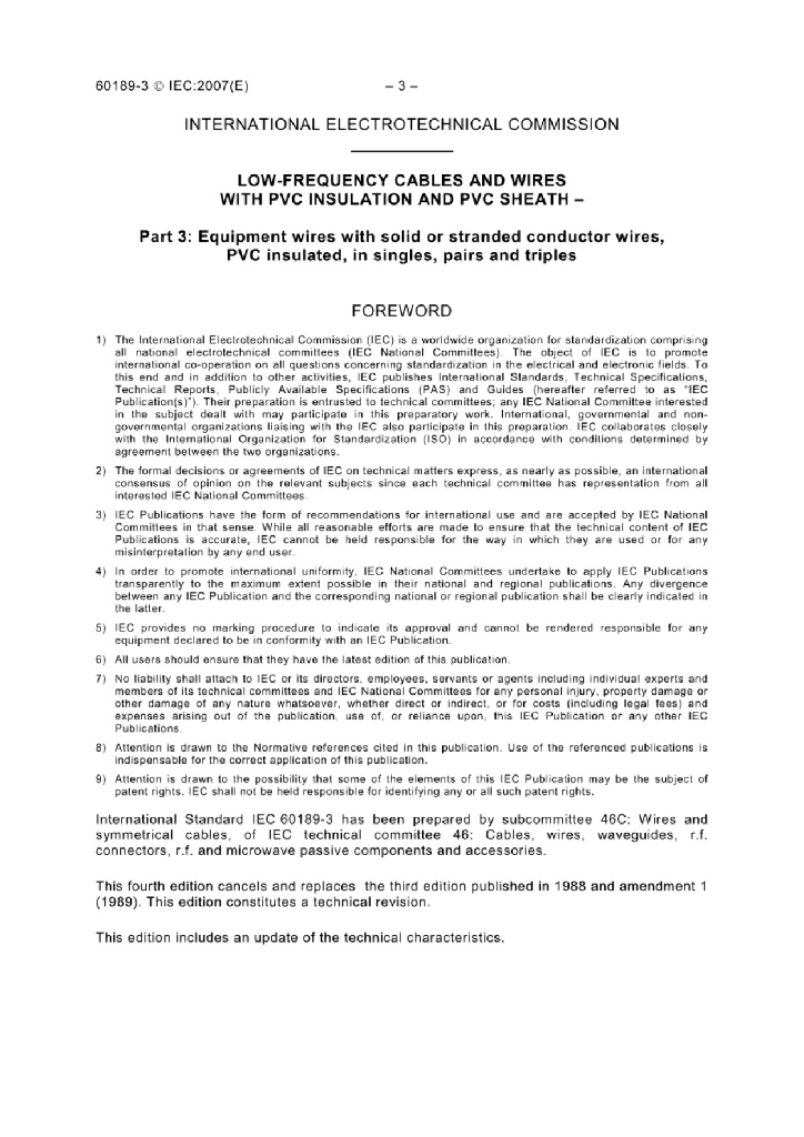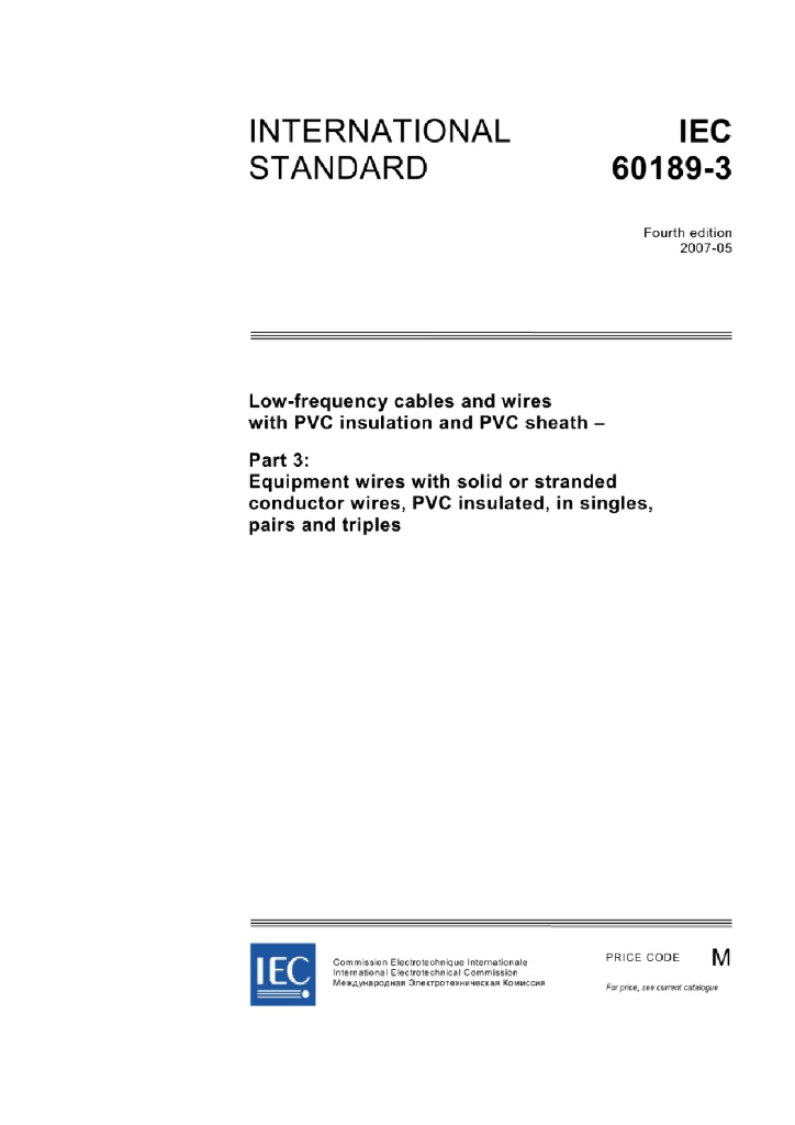 IEC 60189-3:2007 聚氯乙烯绝缘聚氯乙烯护套低频通信电缆电线 第3部分:实芯或绞合导体聚氯乙烯绝缘设备用电线(单线或对线组或三线组)