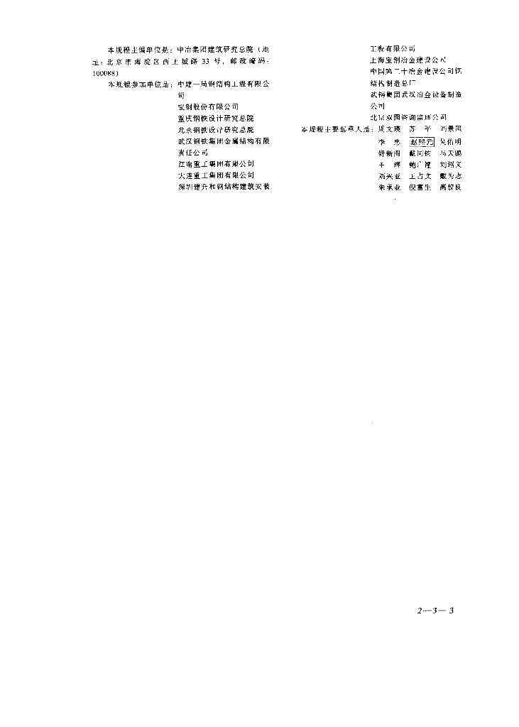 中建一局钢结构工程有限公司、宝钢股份有限公司、重庆钢铁设计研究总院、北京钢铁设计研究总院、武汉钢铁集团金属结构有限责任公司、江南重工集团有限公司、大连重工集团有限公司、深圳建升和钢构逃筑安装工程有限公司、上海宝钢治金建设公司、中国第二十治金建设公司钢结构制造总厂、武钢集团武汉冶金设备制造公司、北京双园咨询监理公司