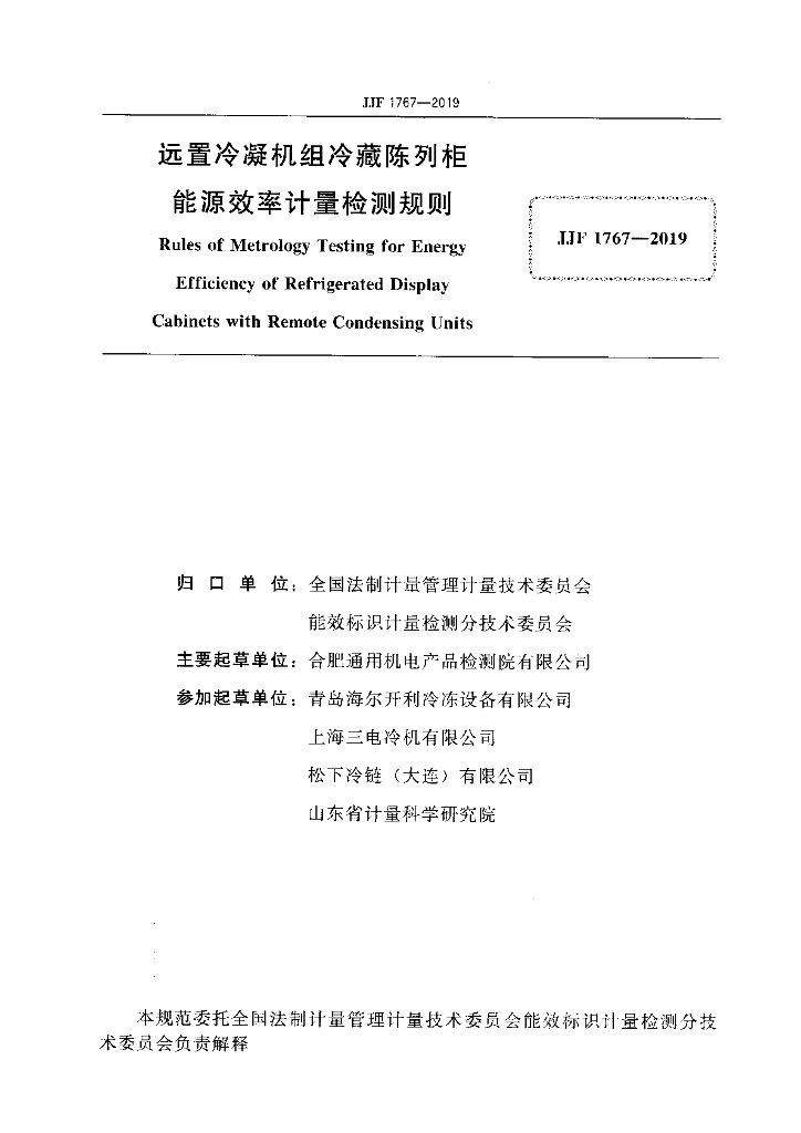 合肥通用机电产品检测院有限公司、青岛海尔开利冷冻设备有限公司、上海三电冷机有限公司、松下冷链(大连)有限公司、山东省计量科学研究院