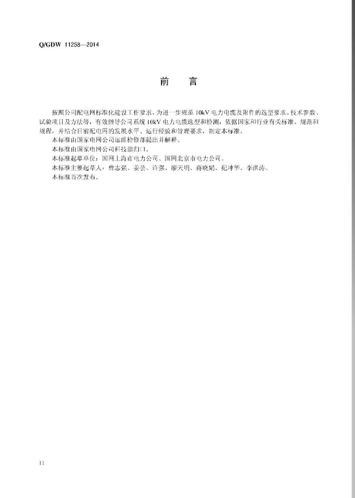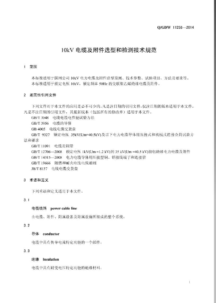 Q/GDW 11258-2014 10kV电缆及附件选型和检测技术规范