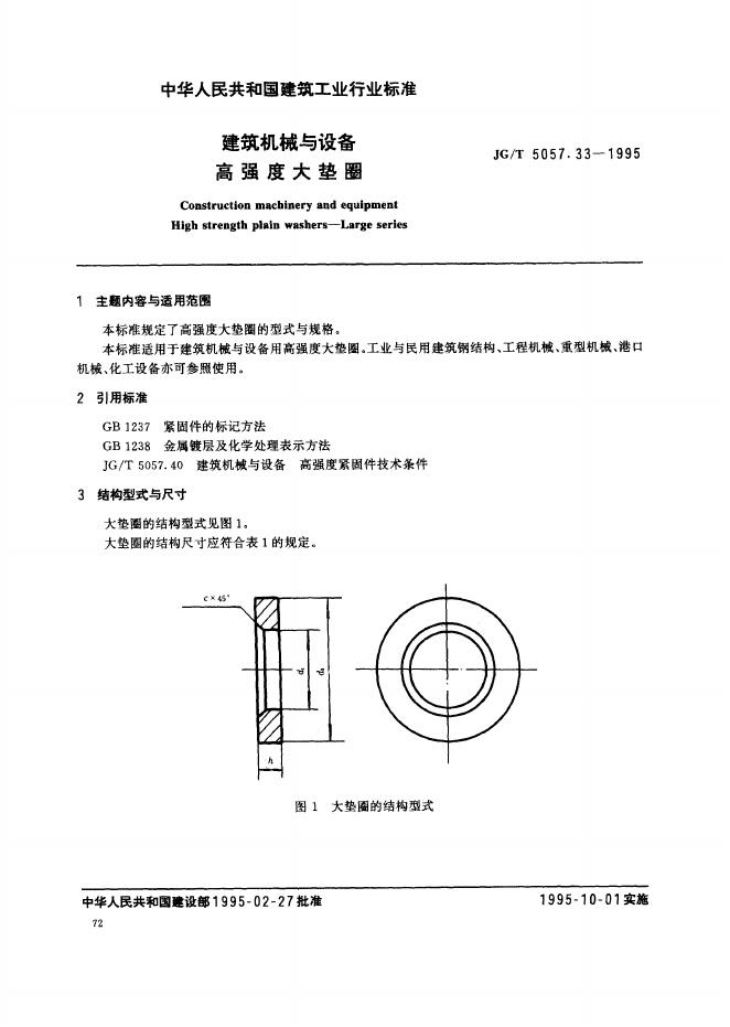 JG/T 5057.33-1995 建筑机械与设备 高强度大垫圈
