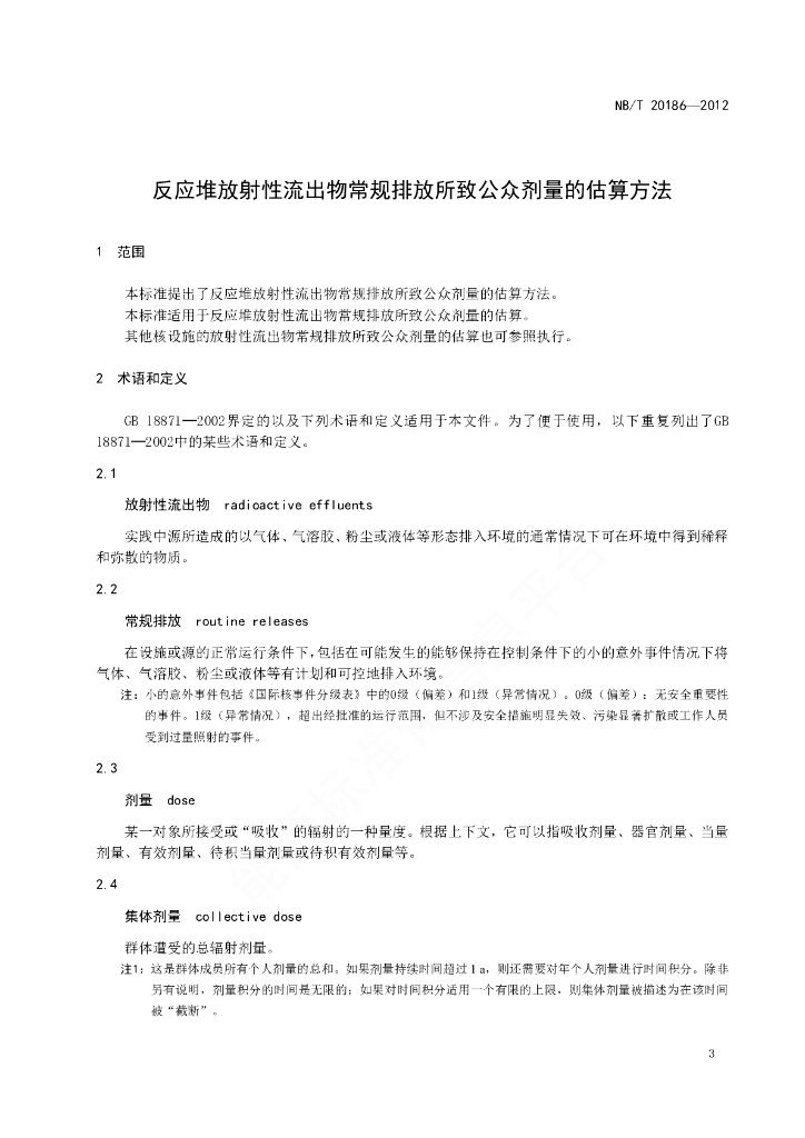 NB/T 20186-2012 反应堆放射性流出物常规排放所致公众剂量的估算方法