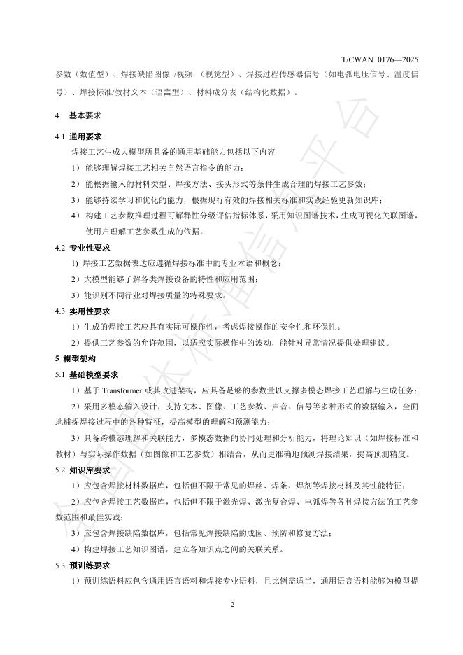 T/CWAN 0176-2025 熔化焊焊接工艺生成大模型技术要求与评估规范