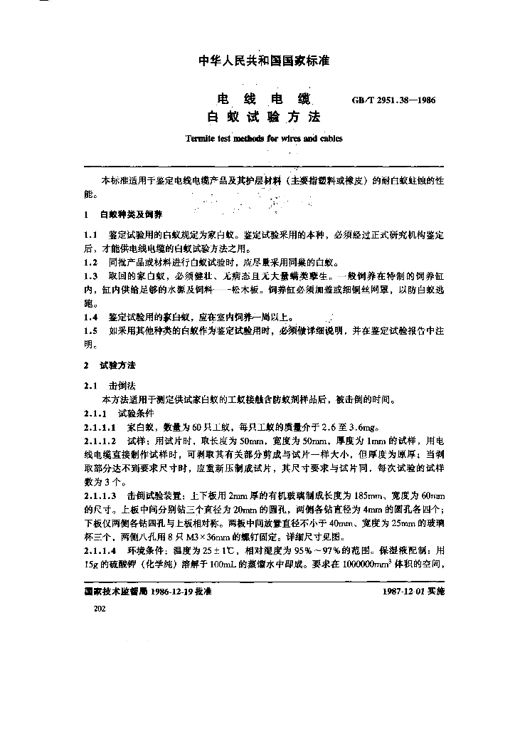 GB/T 2951.38-1986 电线电缆白蚁试验方法