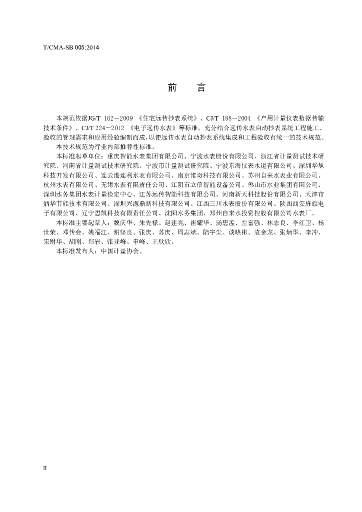 重庆智能水表集团有限公司、宁波水表股份有限公司、浙江省计量测试技术研究院、河南省计量测试技术研究院、宁波市计量测试研究院、宁波东海仪表水道有限公司、深圳华旭科技开发有限公司、连云港连利水表有限公司、南京维奇科技有限公司、苏州自来水表业有限公司、杭州水表有限公司、无锡水表有限责任公司、江阴市立信智能设备公司、佛山市水业集团有限公司、深圳水务集团水表计量检定中心、江苏远传智能科技有限公司、河南新天科技股份有限公司、天津市炳华节能技术有限公司、深圳兴源鼎新科技有限公司、江西三川水表股份有限公司、陕西西安旌旗电子