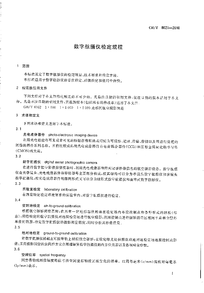 CH/T 1020-2010 1:500 1:1 000 1:2 000地形图质量检验技术规程