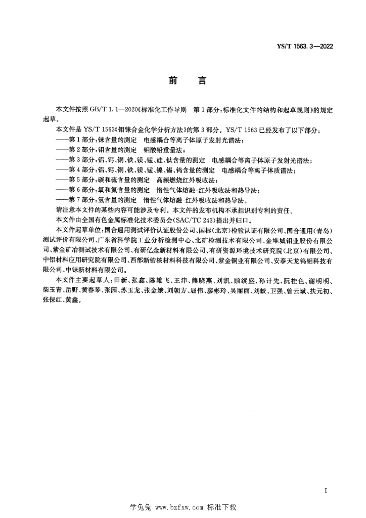 国合通用测试评价认证股份公司、国标(北京)检验认证有限公司、国合通用(青岛)测试评价有限公司、广东省科学院工业分析检测中心北矿检测技术有限公司、金堆城钥业股份有限公司、紫金矿冶测试技术有限公司、有研亿金新材料有限公司、有研资源环境技术研究院(北京)有限公司、中铝材料应用研究院有限公司、西部新锆核材料科技有限公司、紫金铜业有限公司、安泰天龙钨钥科技有限公司中铼新材料有限公司