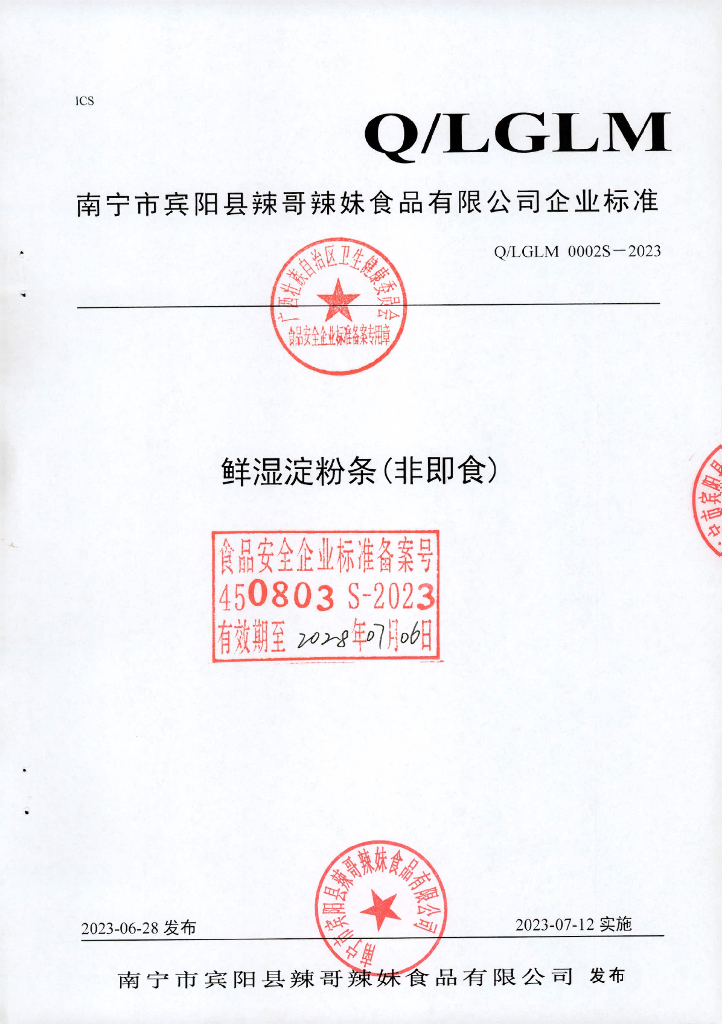 Q/LGLM 0002S-2023 鲜湿淀粉条(非即食)