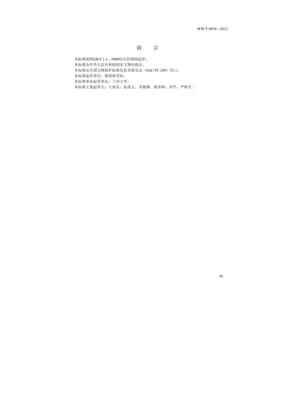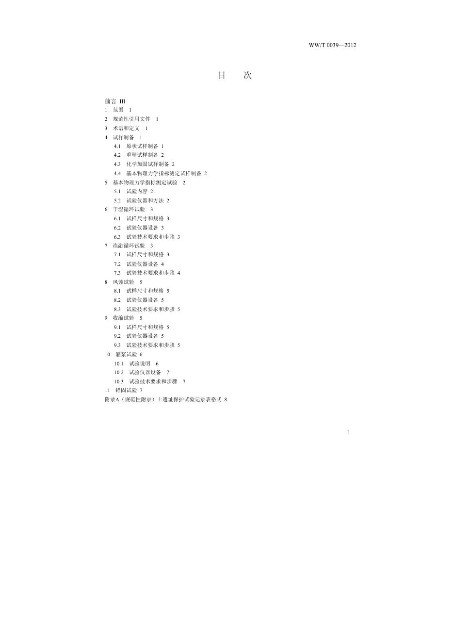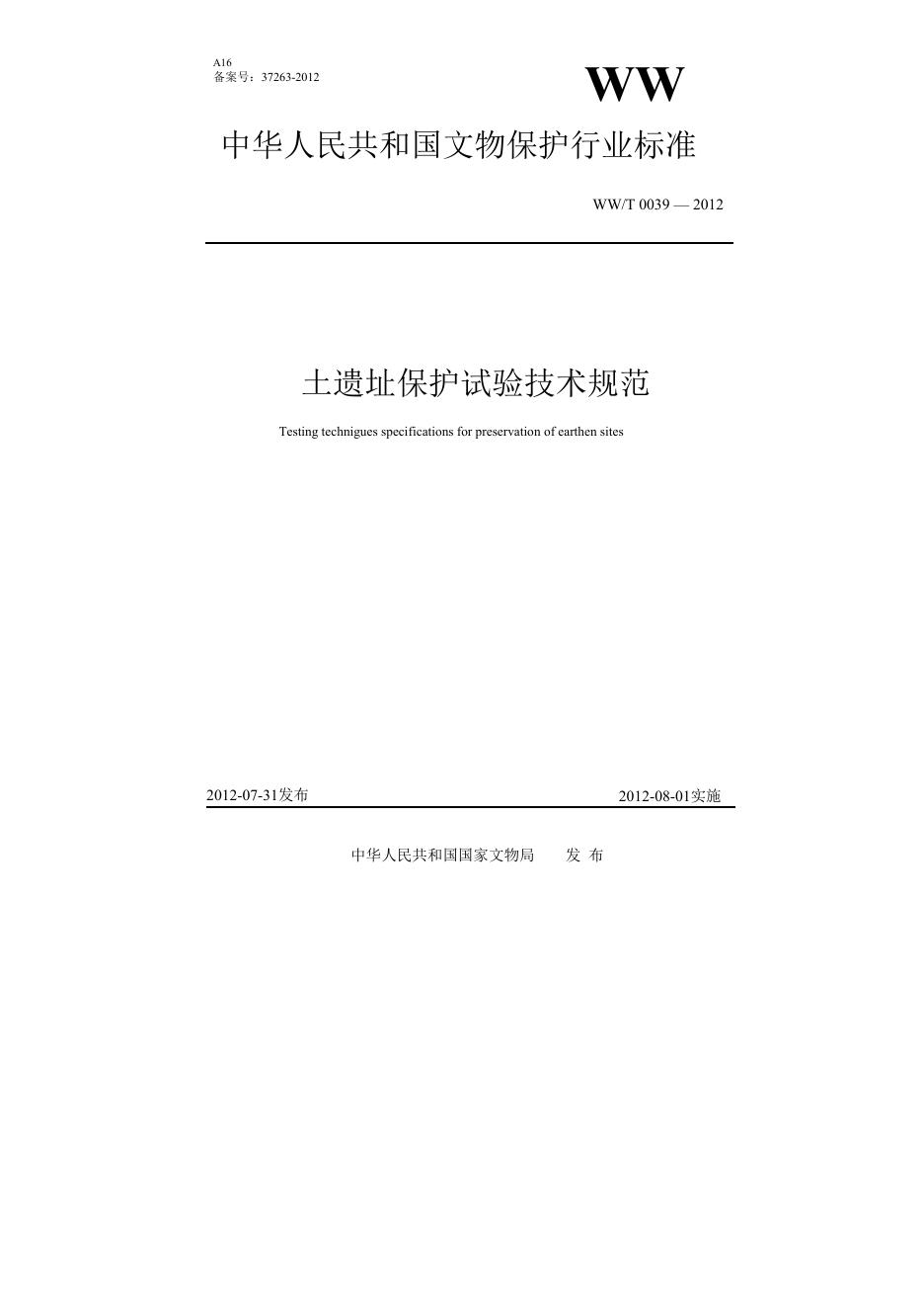 WW/T 0039-2012 土遗址保护试验技术规范