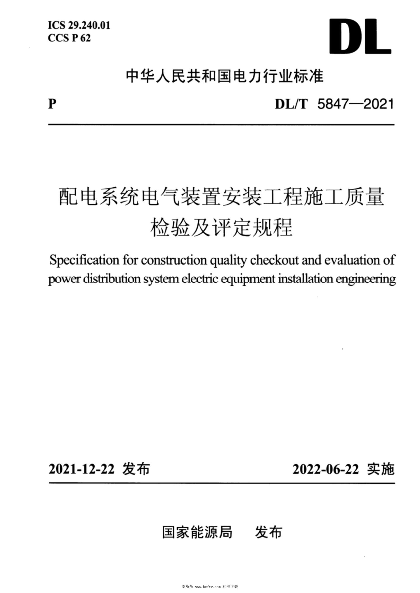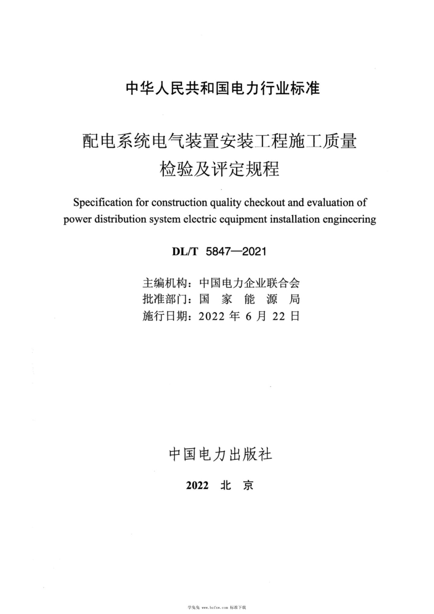 DL/T 5847-2021 配电系统电气装置安装工程施工质量检验及评定规程