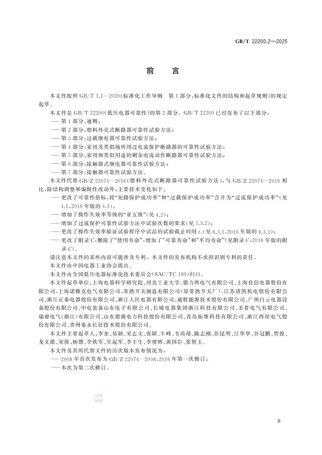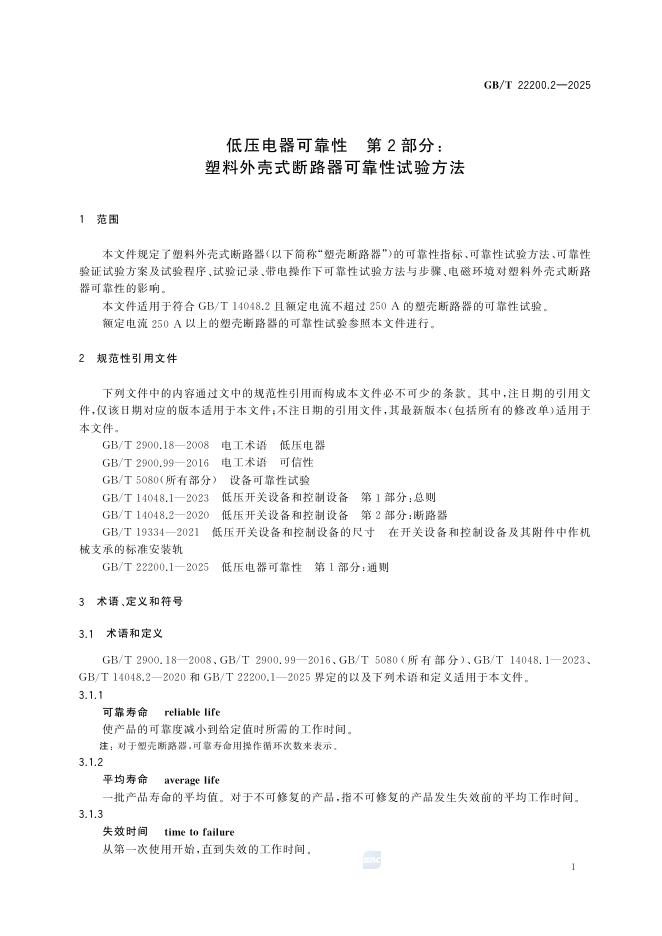 GB/T 22200.2-2025 低压电器可靠性 第2部分:塑料外壳式断路器可靠性试验方法