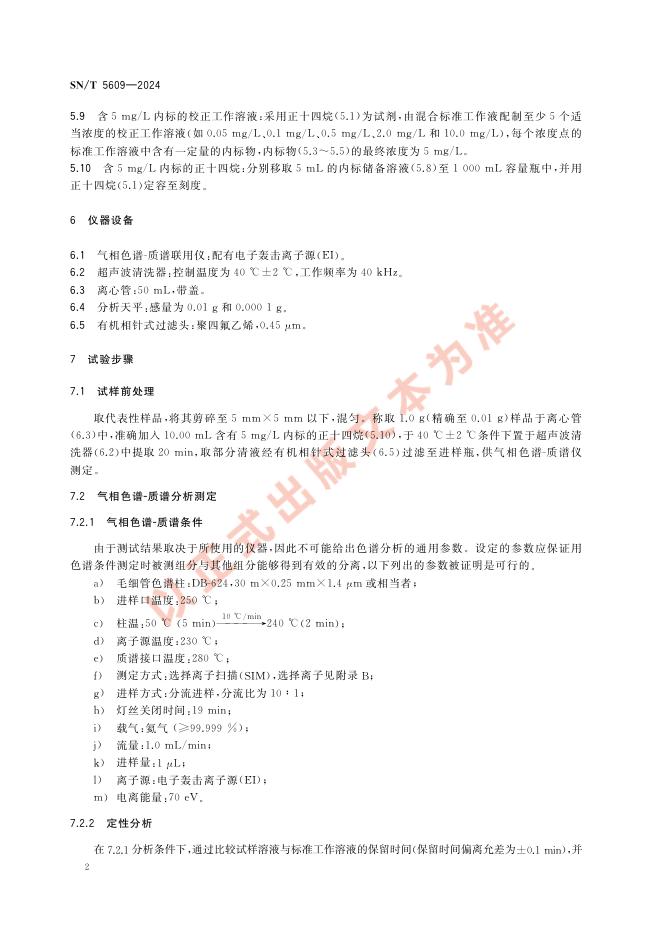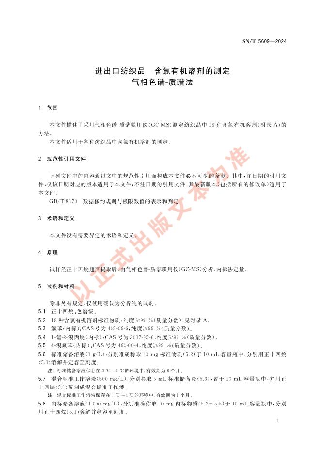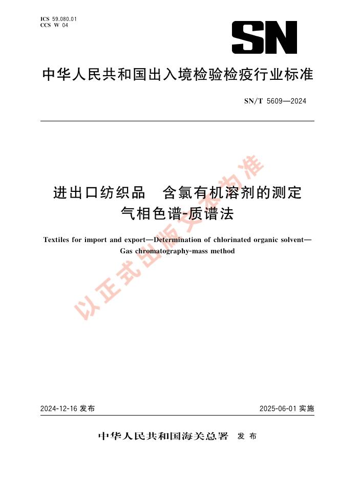 SN/T 5609-2024 进出口纺织品 含氯有机溶剂的测定 气相色谱-质谱法