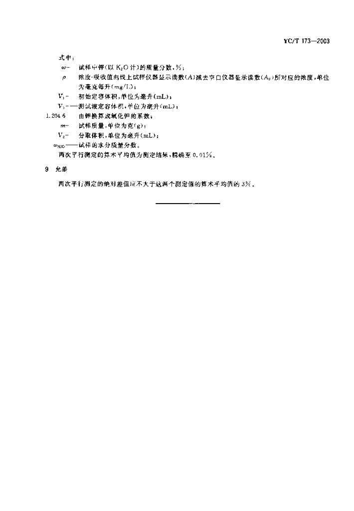 YC/T 173-2003 烟草及烟草制品 钾的测定 火焰光度法