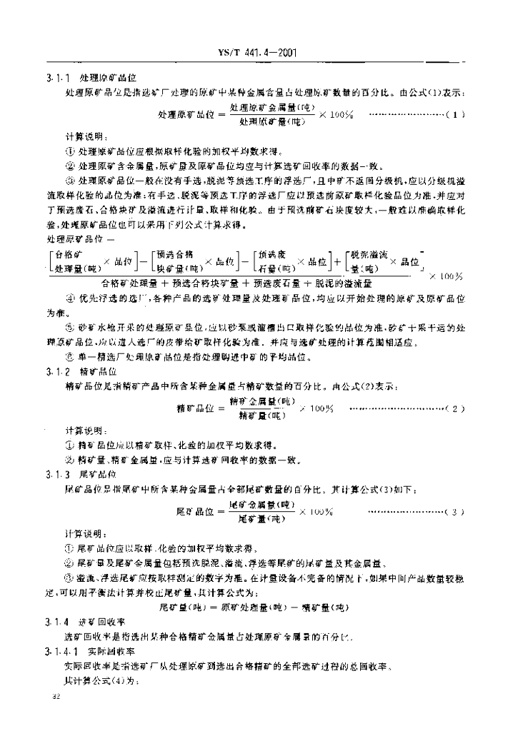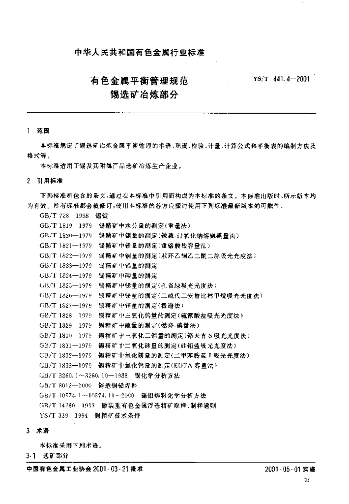 YS/T 441.4-2001 有色金属平衡管理规范锡选矿冶炼部分