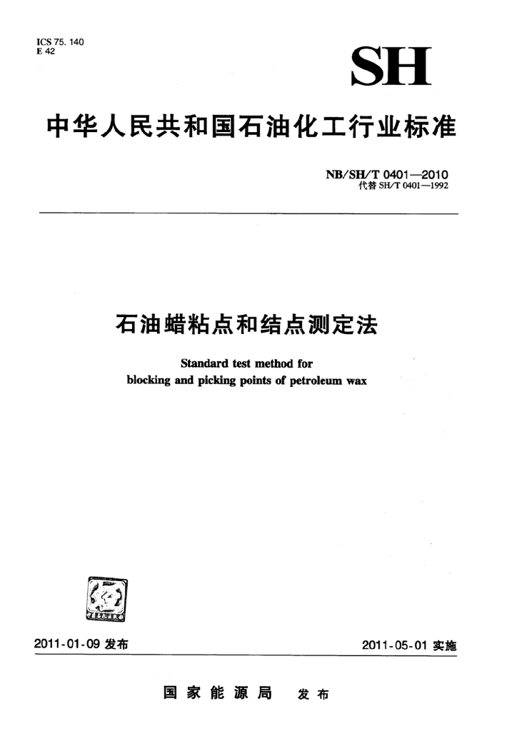 NB/SH/T 0401-2010 石油蜡粘点和结点测定法