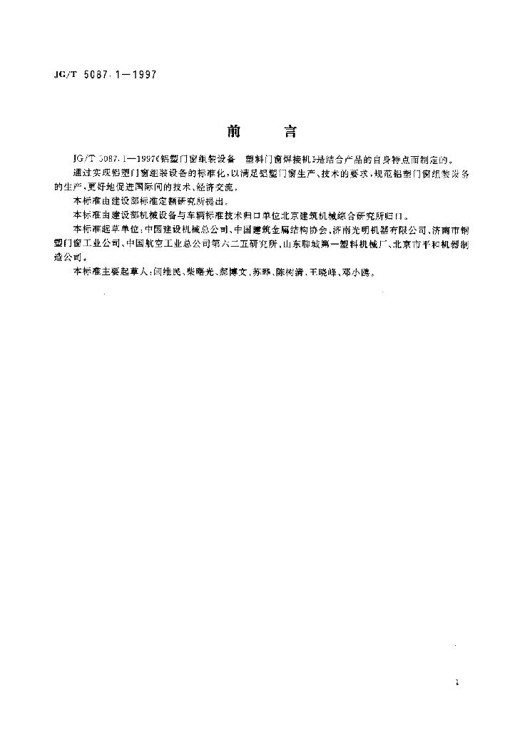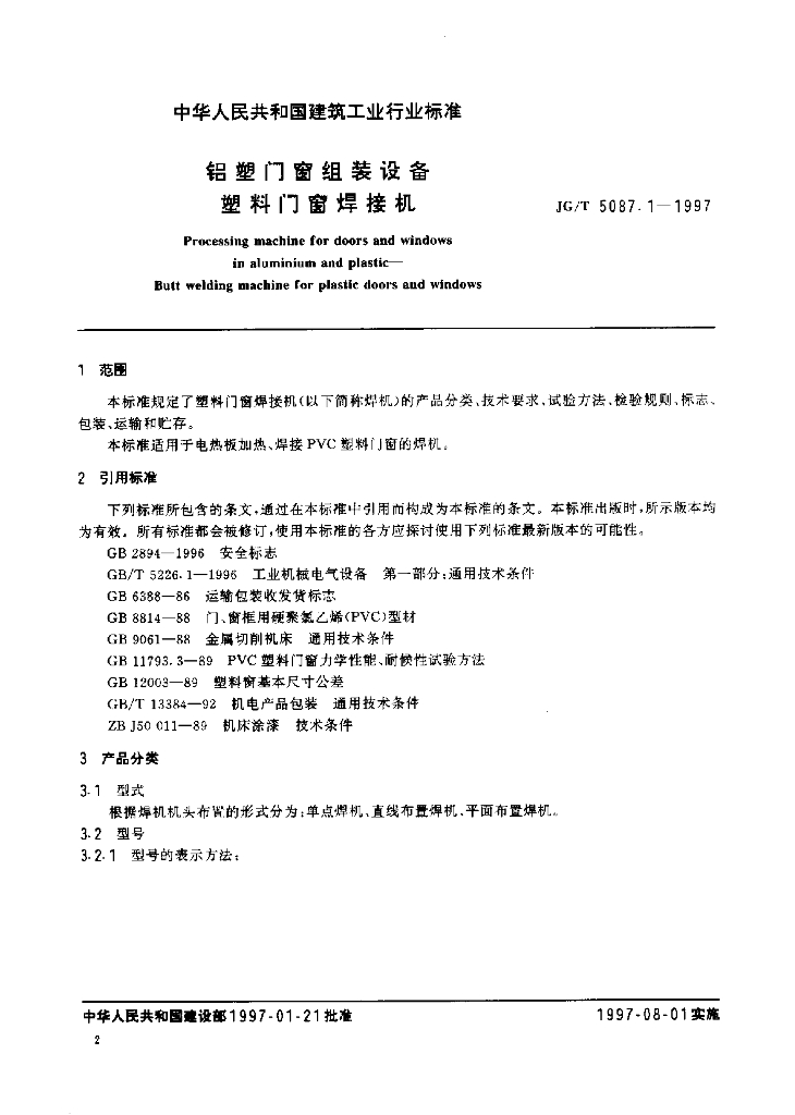 JG/T 5087.1-1997 铝塑门窗组装设备 塑料门窗焊接机